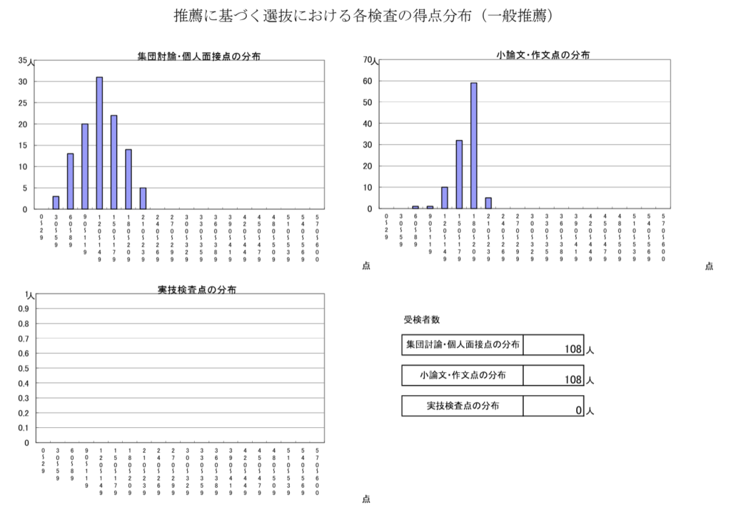 こちらは令和7年度における清瀬高校の推薦入試の得点分布です。