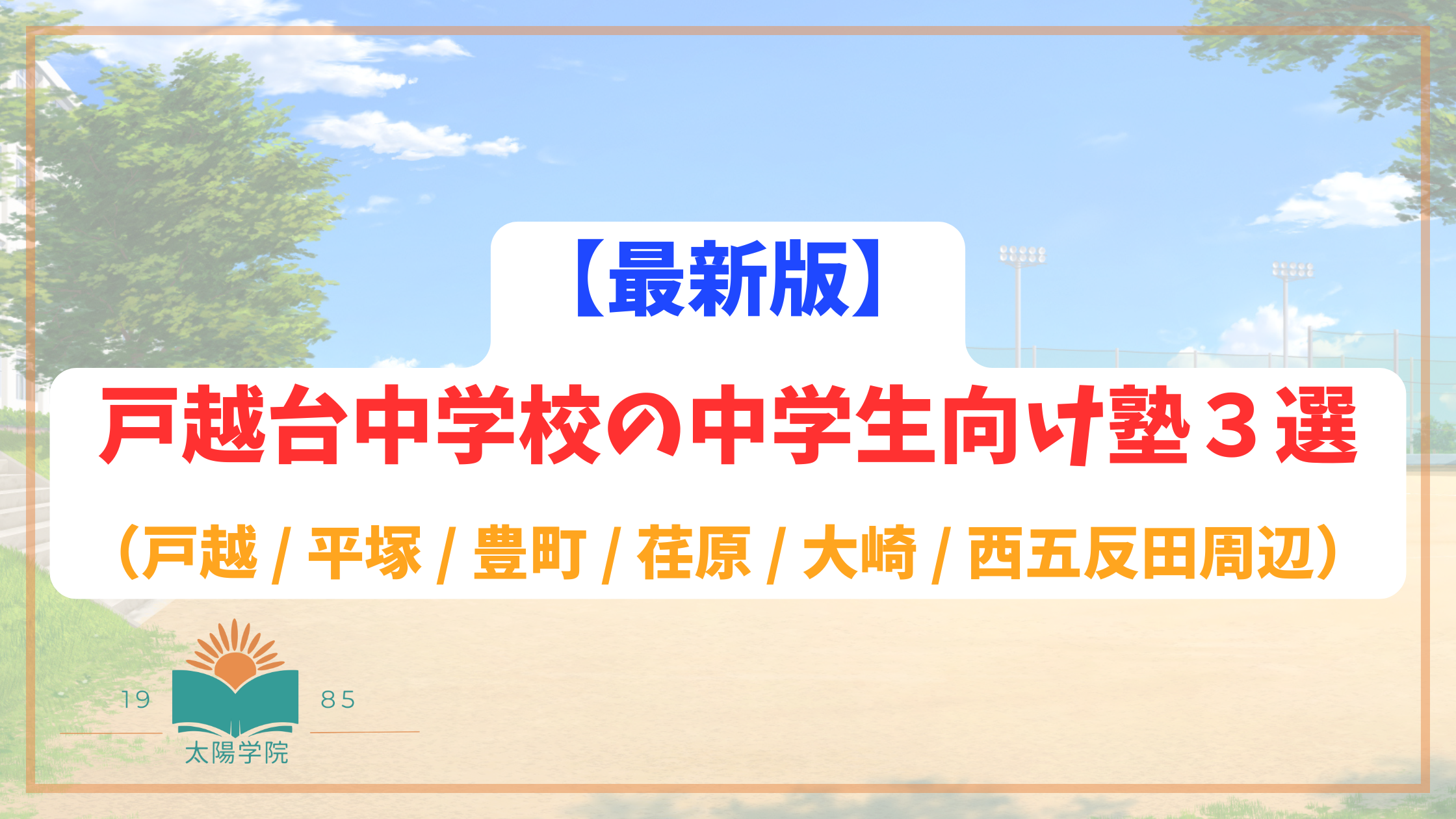 【2026年最新版】戸越台中学校の中学生向け塾3選(戸越 / 平塚 / 豊町 / 荏原 / 大崎 / 西五反田周辺)