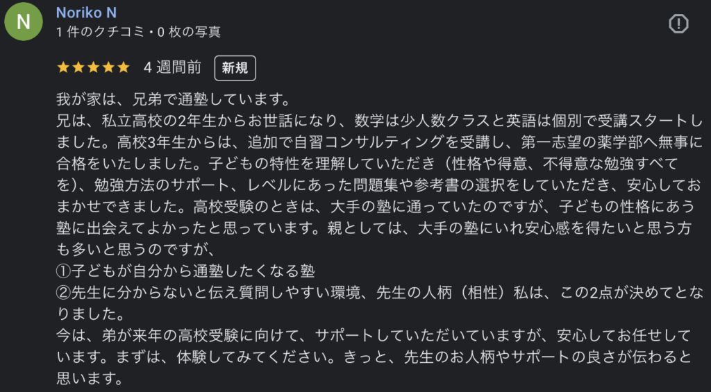 といった生徒やご家庭にとって、柔軟で丁寧な学習支援が受けられる塾だといえます。